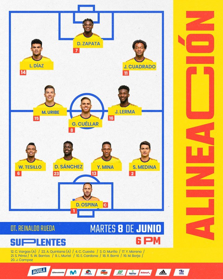 La Alineacion De Colombia En El Historico 5 0 Frente A Argentina